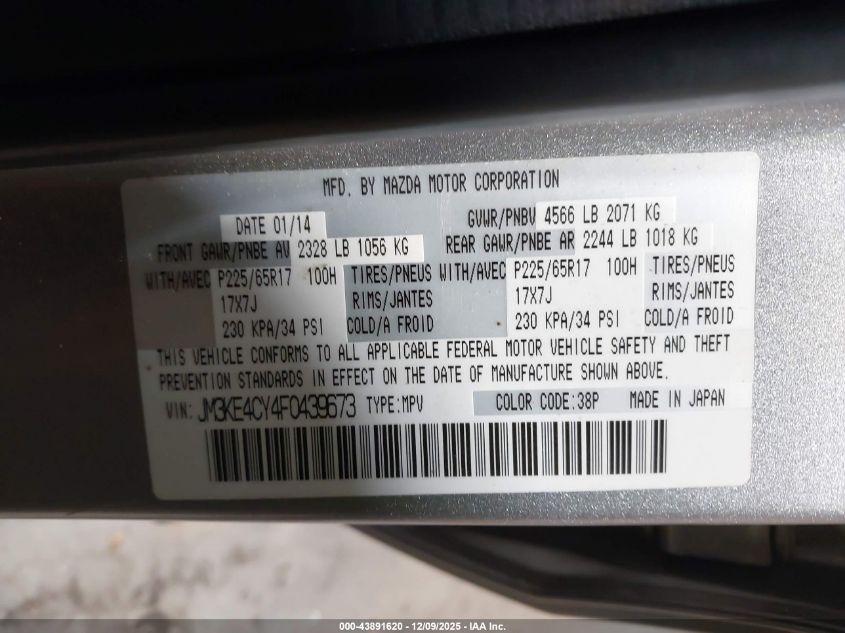 Колір СрібнийЦиліндри 4Привід Повний привідVIN JM3KE4CY4F0439673Стан Заводиться та їде (перевірено)Ушкодження Права сторона AutoRIA