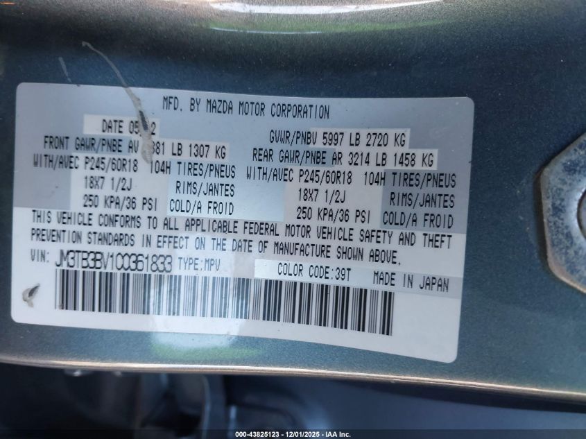 Колір СірийЦиліндри 6Привід Повний привідVIN JM3TB3BV1C0361833Стан Заводиться та їде (перевірено)Ушкодження Передня або задня AutoRIA