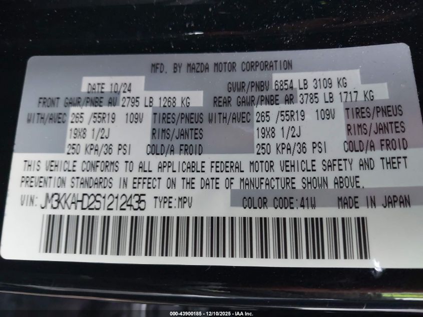 2025 MAZDA CX-90 2025 року Бензин, 3.3, Повний привід, vin - JM3KKAHD2S1212435 з США