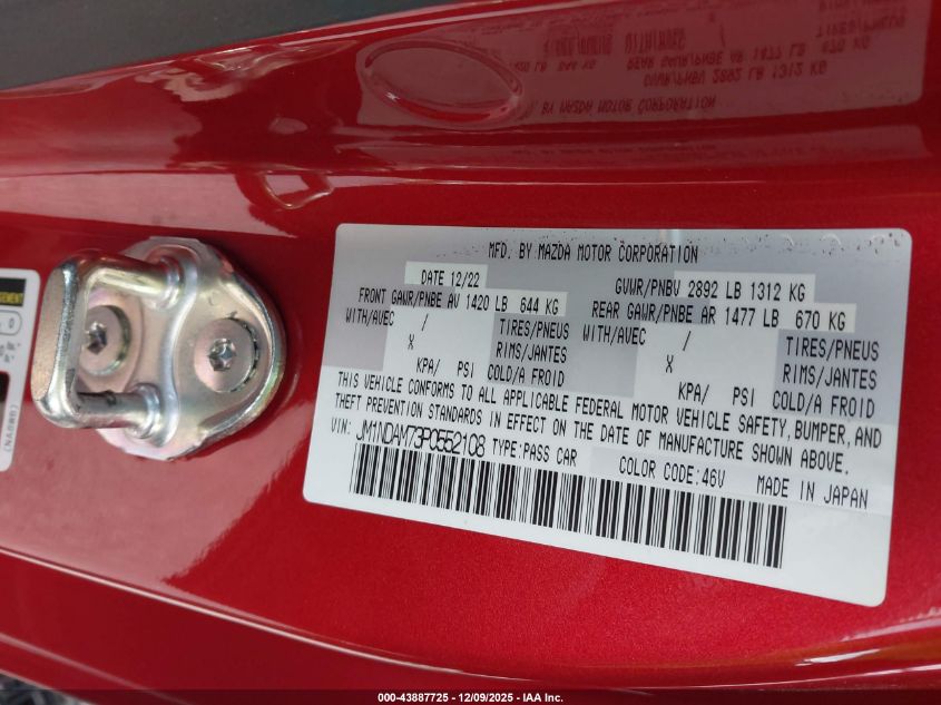 2023 MAZDA MX-5 2023 року Бензин, 2.0, Задній привід, vin - JM1NDAM73P0552108 з США