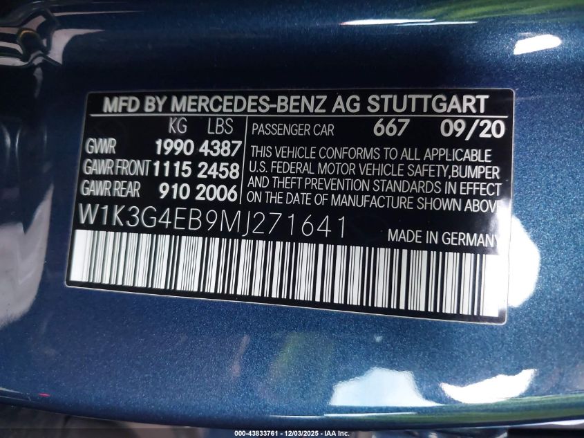 Колір СинійЦиліндри 4Привід Передній привідVIN W1K3G4EB9MJ271641Стан СтаціонарноУшкодження Передня або задня AutoRIA