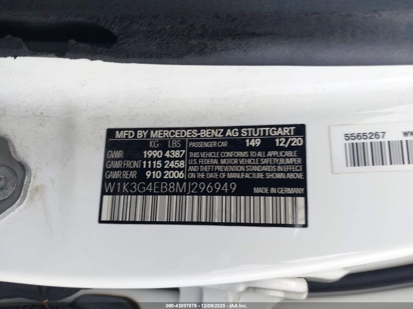 2021 MERCEDES-BENZ A-CLASS 2021 року Бензин, 2.0, Передній привід, vin - W1K3G4EB8MJ296949 з США