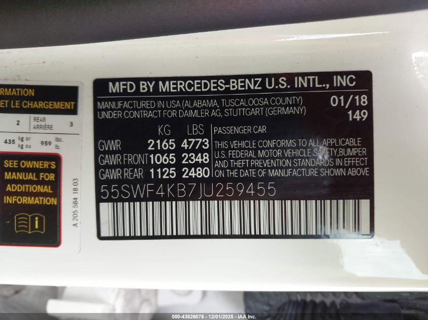 2018 MERCEDES-BENZ C-CLASS 2018 року Бензин, 2.0, Повний привід, vin - 55SWF4KB7JU259455 з США
