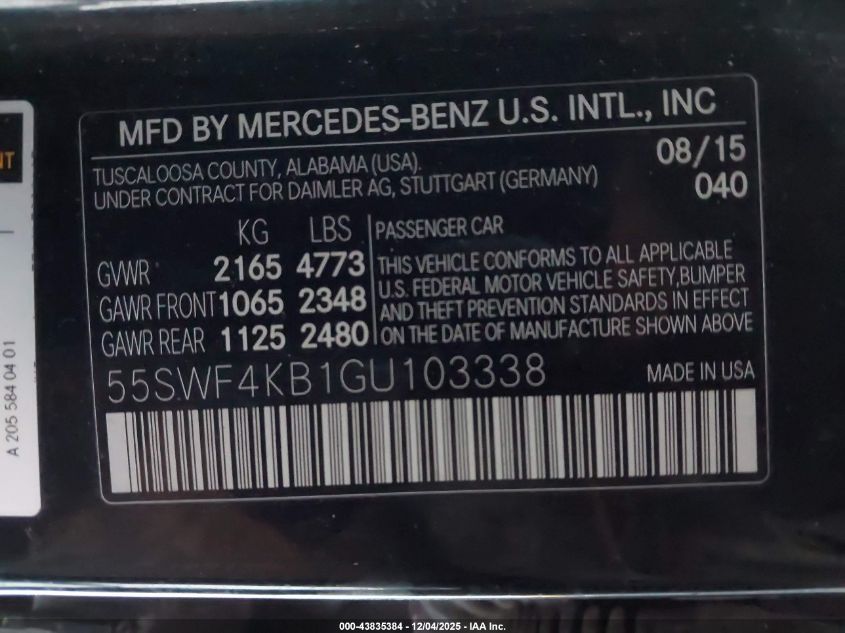 2016 MERCEDES-BENZ C-CLASS 2016 року Бензин, 2.0, Повний привід, vin - 55SWF4KB1GU103338 з США