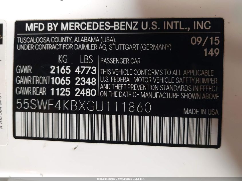 2016 MERCEDES-BENZ C-CLASS 2016 року Бензин, 2.0, Повний привід, vin - 55SWF4KBXGU111860 з США