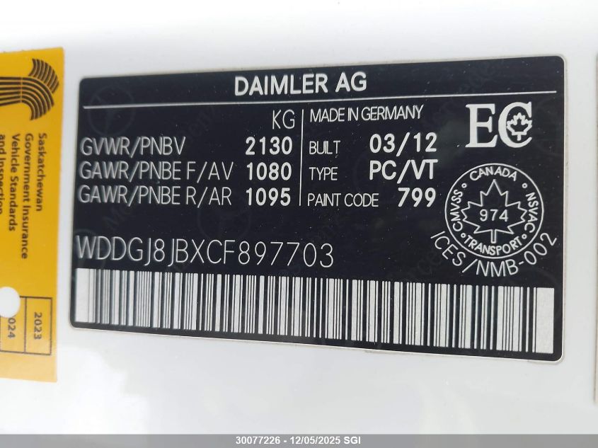 Колір БілийЦиліндри 6Привід Повний привідVIN WDDGJ8JBXCF897703Стан Заводиться та їде (перевірено)Ушкодження Передня праваДата аукціону 2025-12-09 AutoRIA