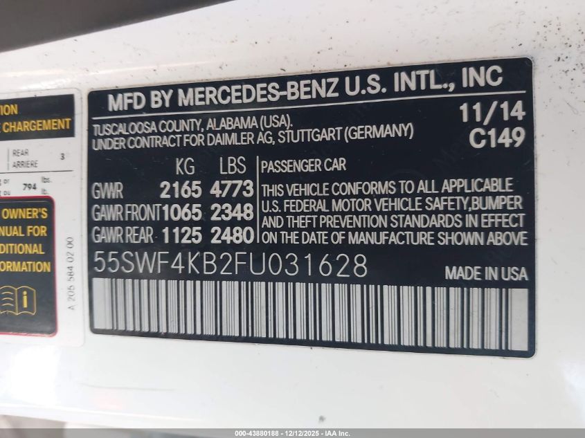 2015 MERCEDES-BENZ C-CLASS 2015 року Бензин, 2.0, Повний привід, vin - 55SWF4KB2FU031628 з США