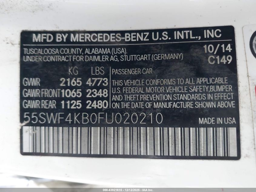2015 MERCEDES-BENZ C-CLASS 2015 року Бензин, 2.0, Повний привід, vin - 55SWF4KB0FU020210 з США