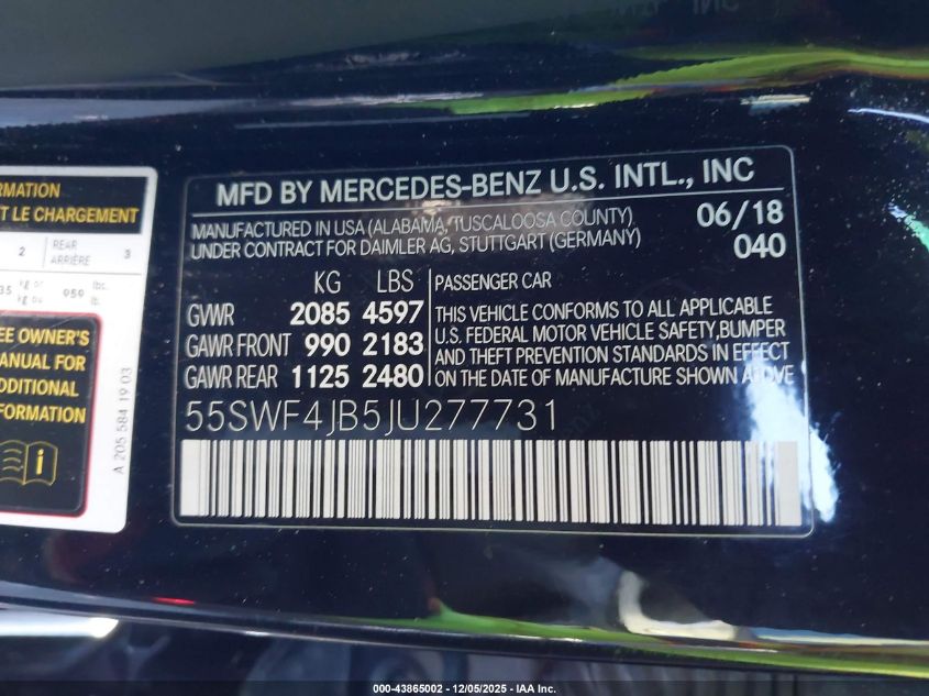 2018 MERCEDES-BENZ C-CLASS 2018 року Бензин, 2.0, Задній привід, vin - 55SWF4JB5JU277731 з США