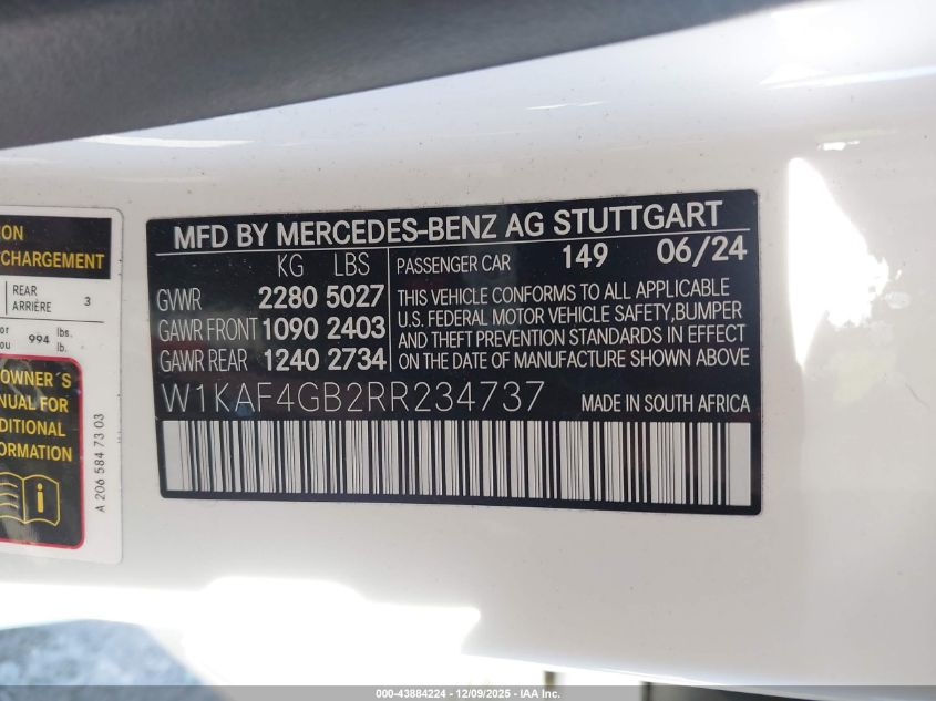 2024 MERCEDES-BENZ C-CLASS 2024 року Бензин, 2.0, Задній привід, vin - W1KAF4GB2RR234737 з США