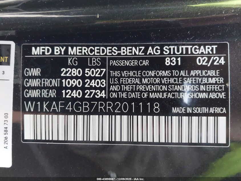 2024 MERCEDES-BENZ C-CLASS 2024 року Бензин, 2.0, Задній привід, vin - W1KAF4GB7RR201118 з США