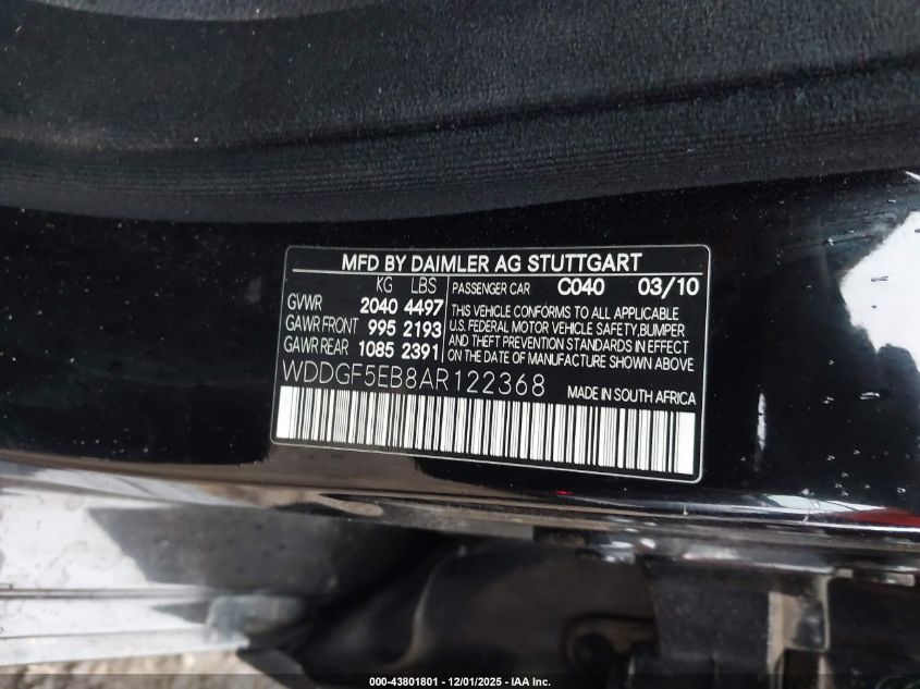 Колір ЧорнийЦиліндри 6Привід Задній привідVIN WDDGF5EB8AR122368Стан Заводиться та їде (перевірено)Ушкодження Передня або задня AutoRIA