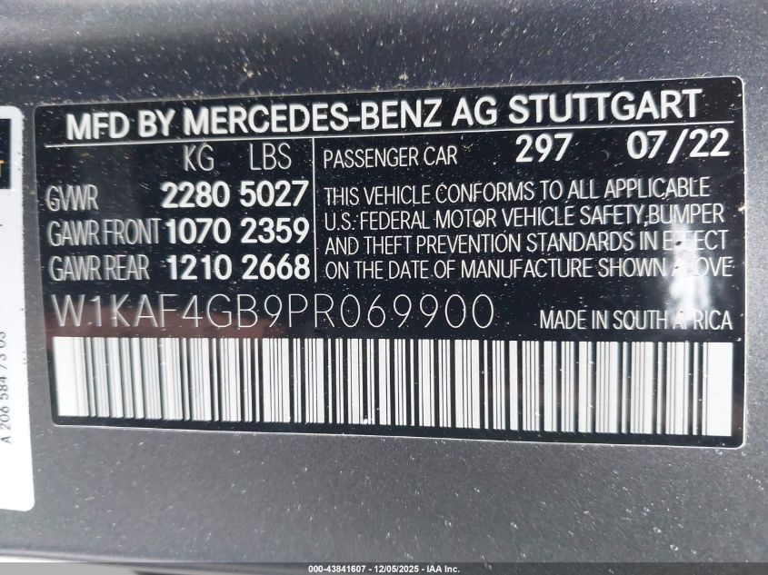 Колір СірийЦиліндри 4Привід Задній привідVIN W1KAF4GB9PR069900Стан Заводиться та їде (перевірено)Ушкодження Передня і задня AutoRIA