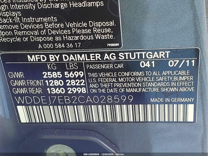 Колір СірийЦиліндри 8Привід Задній привідVIN WDDEJ7EB2CA028599Стан Заводиться та їде (перевірено)Ушкодження Передня або задня AutoRIA