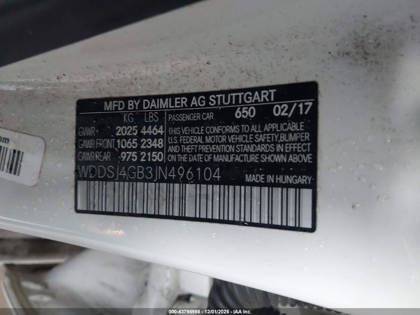 Колір БілийЦиліндри 4Привід Повний привідVIN WDDSJ4GB3JN496104Стан СтаціонарноУшкодження Низ AutoRIA