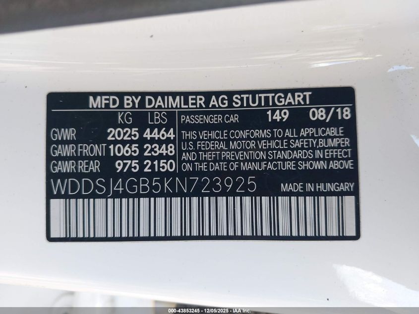 2019 MERCEDES-BENZ CLA-CLASS 2019 року Бензин, 2.0, Повний привід, vin - WDDSJ4GB5KN723925 з США