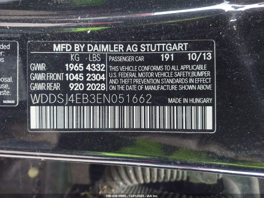 Колір ЧорнийЦиліндри 4Привід Передній привідVIN WDDSJ4EB3EN051662Стан СтаціонарноУшкодження Мотор AutoRIA