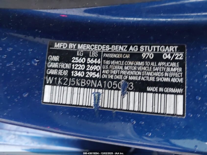 Колір СинійЦиліндри 6Привід Повний привідVIN W1K2J5KB9NA105063Стан Заводиться та їде (перевірено)Ушкодження Передня або задня AutoRIA