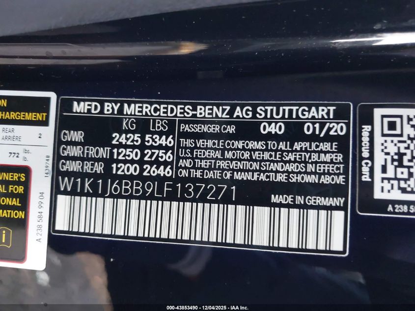 2020 MERCEDES-BENZ E-CLASS 2020 року Бензин, 3.0, Повний привід, vin - W1K1J6BB9LF137271 з США