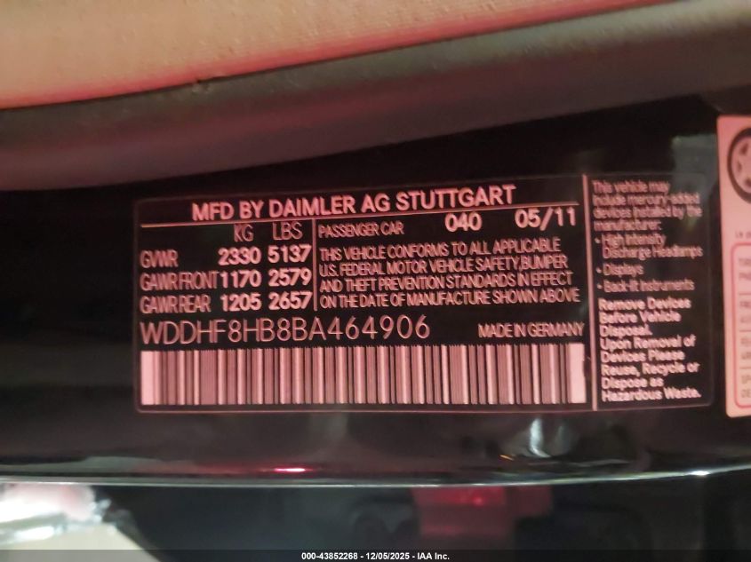 2011 MERCEDES-BENZ E-CLASS 2011 року Бензин, 3.5, Повний привід, vin - WDDHF8HB8BA464906 з США