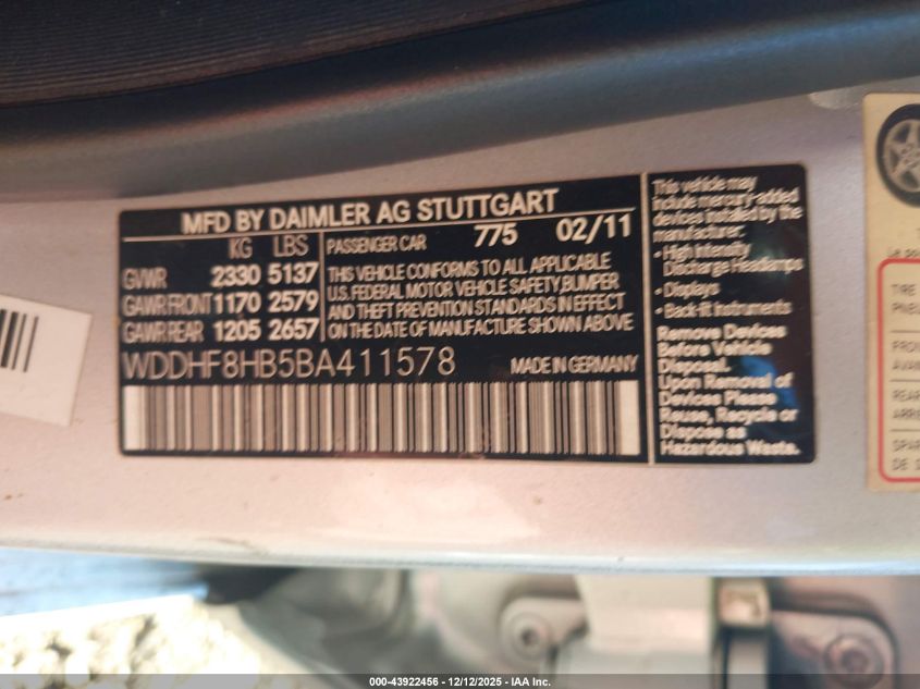 2011 MERCEDES-BENZ E-CLASS 2011 року Бензин, 3.5, Повний привід, vin - WDDHF8HB5BA411578 з США