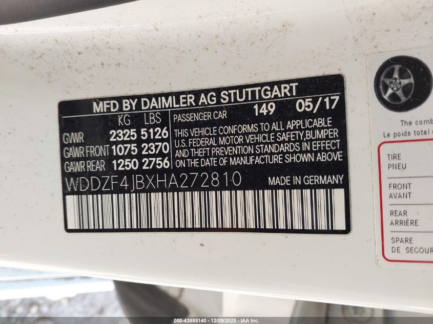 2017 MERCEDES-BENZ E-CLASS 2017 року Бензин, 2.0, Задній привід, vin - WDDZF4JBXHA272810 з США