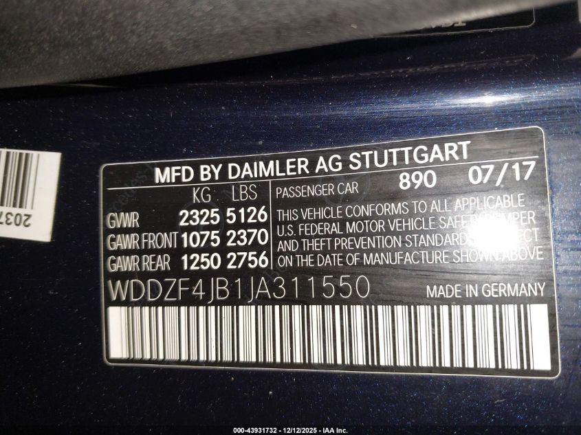 2018 MERCEDES-BENZ E-CLASS 2018 року Бензин, 2.0, Задній привід, vin - WDDZF4JB1JA311550 з США