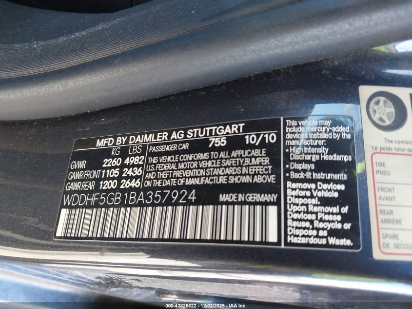 2011 MERCEDES-BENZ E-CLASS 2011 року Бензин, 3.5, Задній привід, vin - WDDHF5GB1BA357924 з США