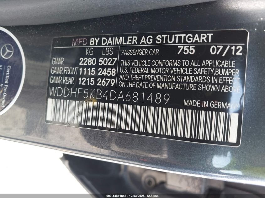 2013 MERCEDES-BENZ E-CLASS 2013 року Бензин, 3.5, Задній привід, vin - WDDHF5KB4DA681489 з США