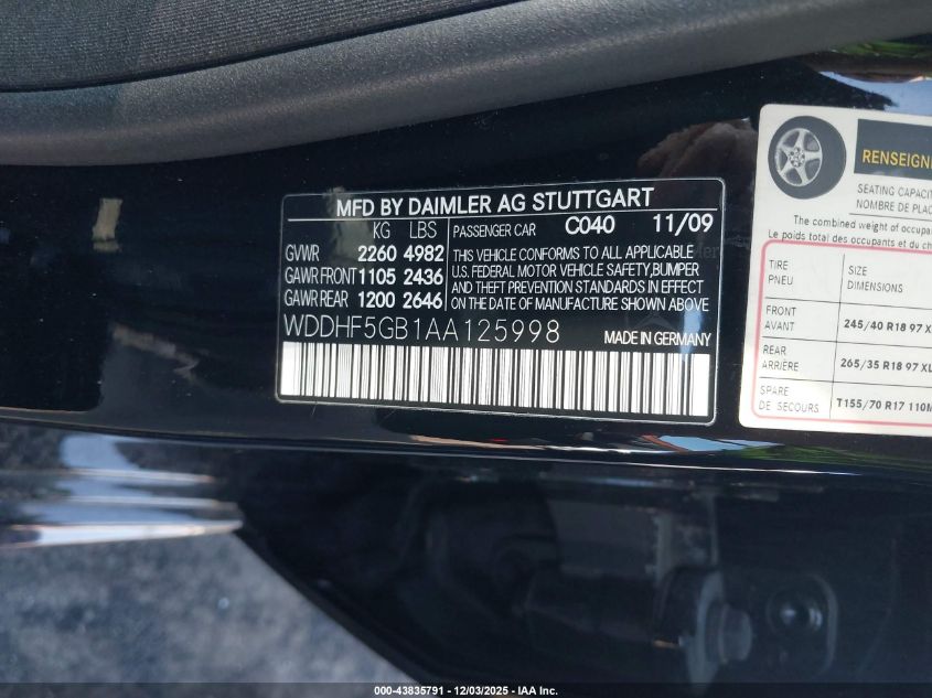 Колір ЧорнийЦиліндри 6Привід Задній привідVIN WDDHF5GB1AA125998Стан ЗаводитьсяУшкодження Передня ліва AutoRIA