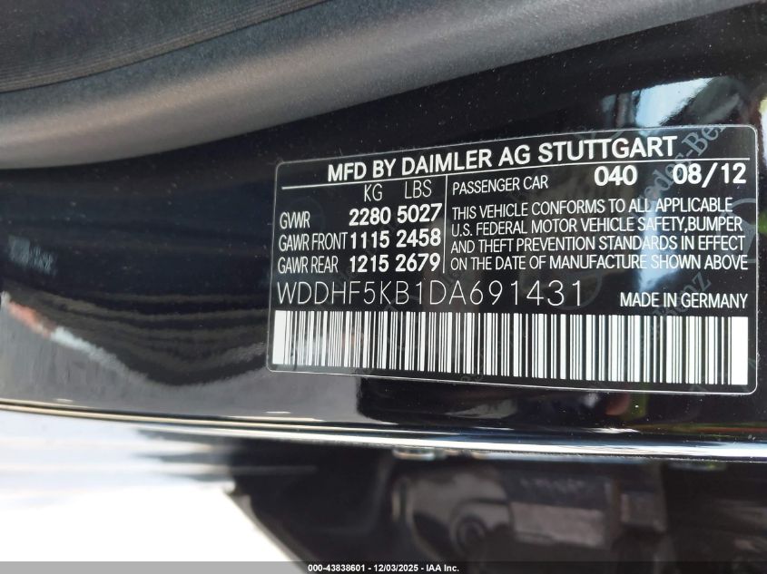 2013 MERCEDES-BENZ E-CLASS 2013 року Бензин, 3.5, Задній привід, vin - WDDHF5KB1DA691431 з США