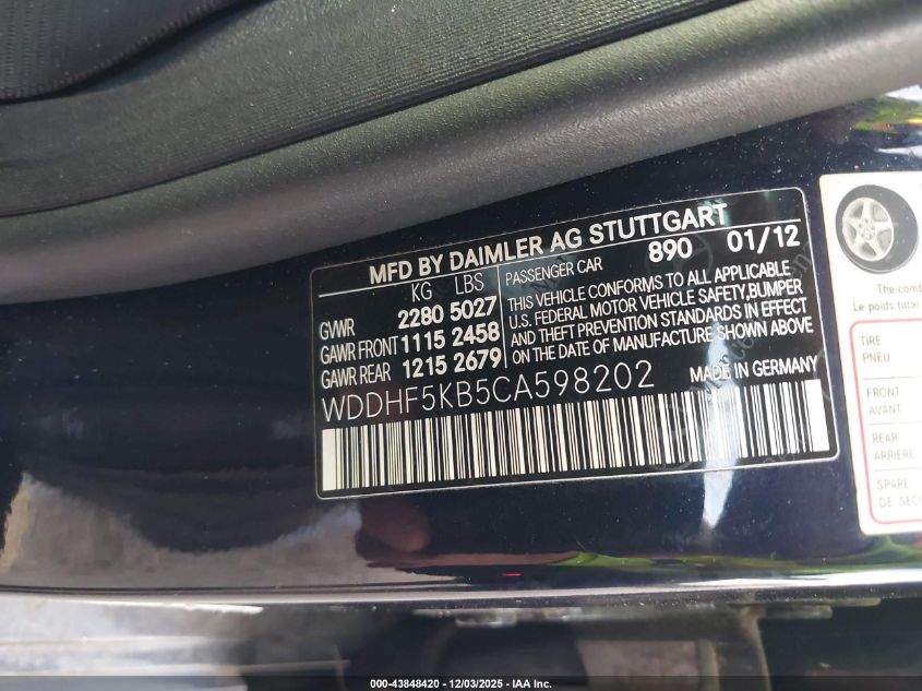 2012 MERCEDES-BENZ E-CLASS 2012 року Бензин, 3.5, Задній привід, vin - WDDHF5KB5CA598202 з США