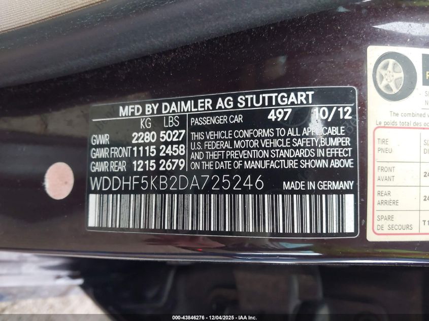 2013 MERCEDES-BENZ E-CLASS 2013 року Бензин, 3.5, Задній привід, vin - WDDHF5KB2DA725246 з США
