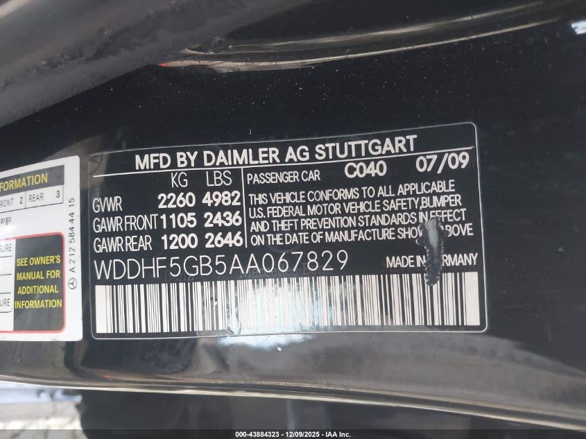 2010 MERCEDES-BENZ E-CLASS 2010 року Бензин, 3.5, Задній привід, vin - WDDHF5GB5AA067829 з США