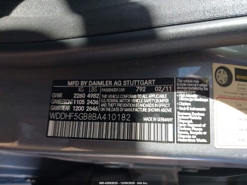 2011 MERCEDES-BENZ E-CLASS 2011 року Бензин, 3.5, Задній привід, vin - WDDHF5GB8BA410182 з США