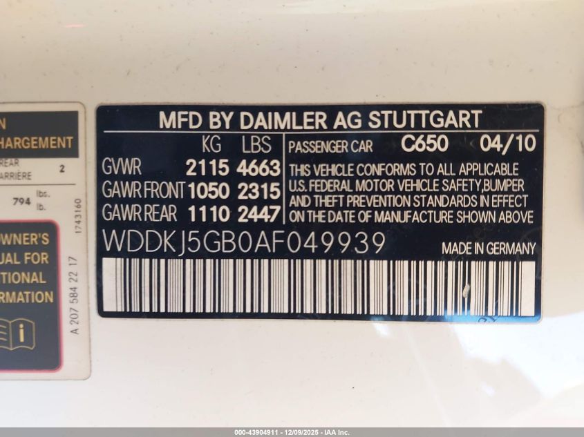 Колір БілийЦиліндри 6Привід Задній привідVIN WDDKJ5GB0AF049939Стан ЗаводитьсяУшкодження Передня або задня AutoRIA