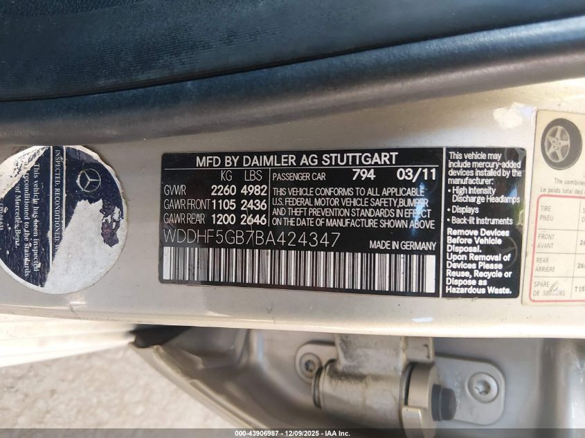 2011 MERCEDES-BENZ E-CLASS 2011 року Бензин, 3.5, Задній привід, vin - WDDHF5GB7BA424347 з США
