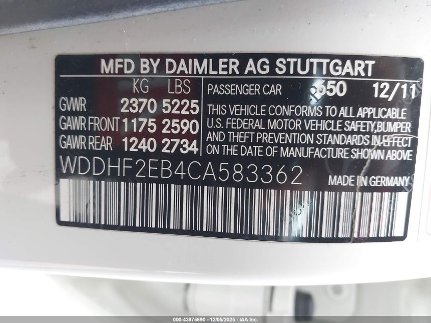 2012 MERCEDES-BENZ E-CLASS 2012 року Дизель, 3.0, Задній привід, vin - WDDHF2EB4CA583362 з США
