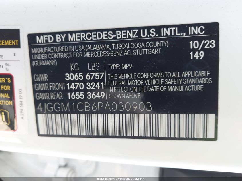 2023 MERCEDES-BENZ EQE SUV 2023 року Електричний, 0.0, Повний привід, vin - 4JGGM1CB6PA030903 з США