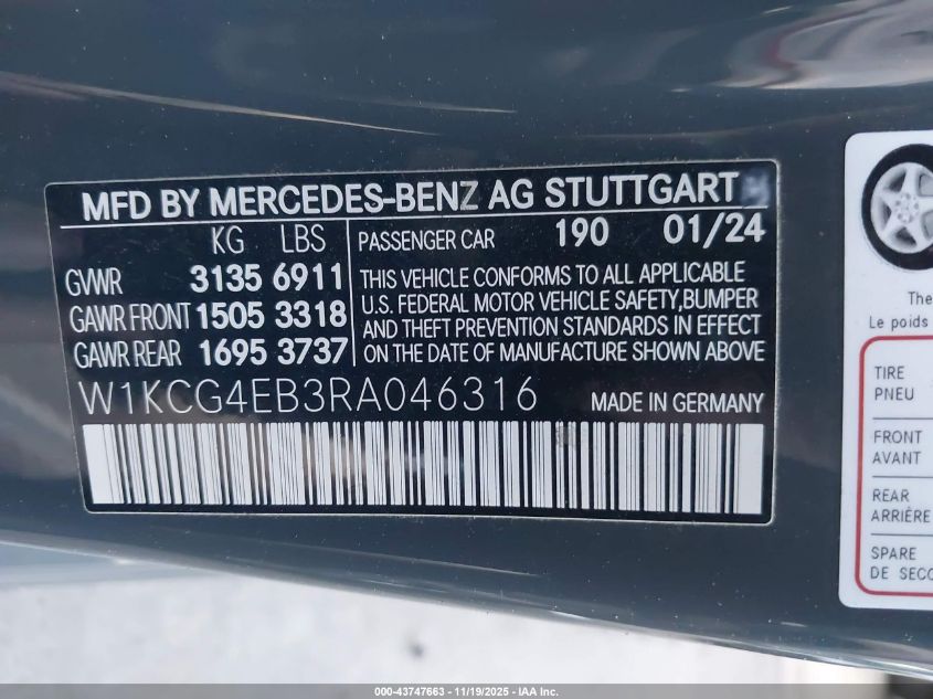 Колір СірийПривід Повний привідVIN W1KCG4EB3RA046316Стан НевідомоУшкодження Ліва сторона AutoRIA
