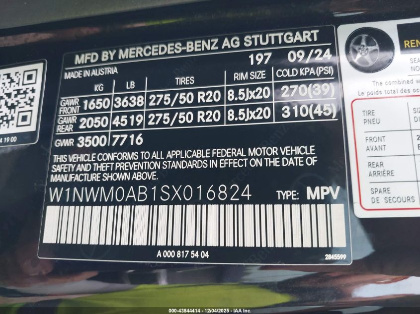 2025 MERCEDES-BENZ G-CLASS 2025 року Електричний, U, Повний привід, vin - W1NWM0AB1SX016824 з США