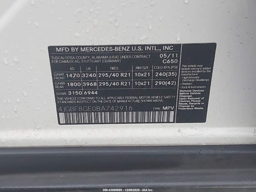 2011 MERCEDES-BENZ GL-CLASS 2011 року Бензин, 5.5, Повний привід, vin - 4JGBF8GE0BA742916 з США