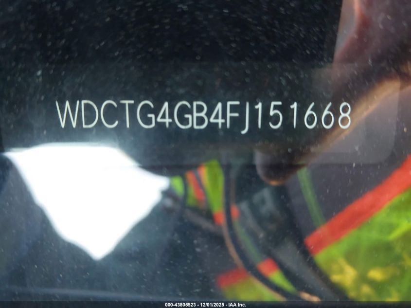 Колір СірийЦиліндри 4Привід Повний привідVIN WDCTG4GB4FJ151668Стан Заводиться та їде (перевірено)Ушкодження Передня або задня AutoRIA