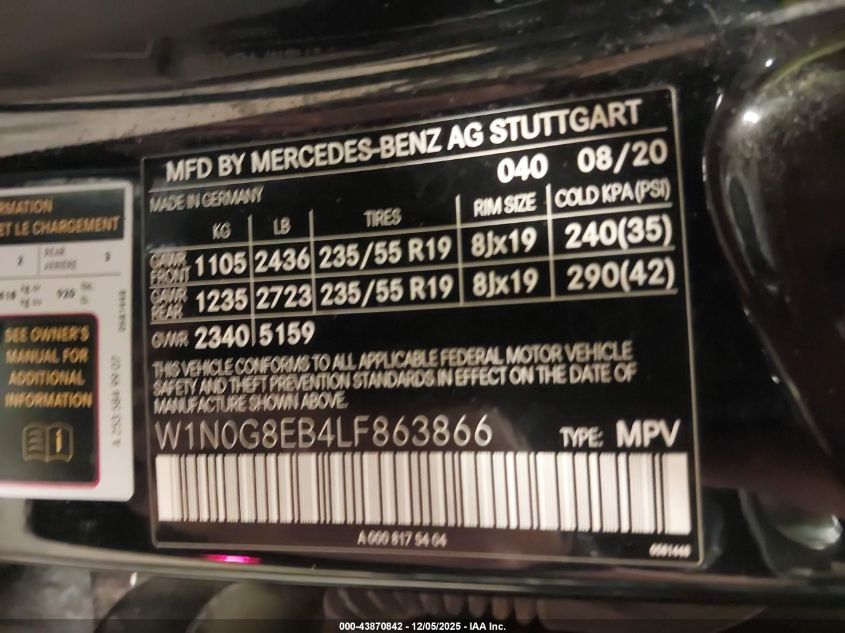 2020 MERCEDES-BENZ GLC-CLASS 2020 року Бензин, 2.0, Повний привід, vin - W1N0G8EB4LF863866 з США