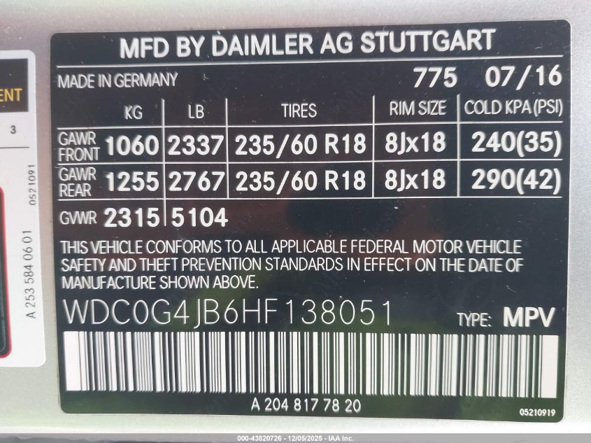 Колір СрібнийЦиліндри 4VIN WDC0G4JB6HF138051Стан Заводиться та їде (перевірено)Ушкодження Передня або задня AutoRIA