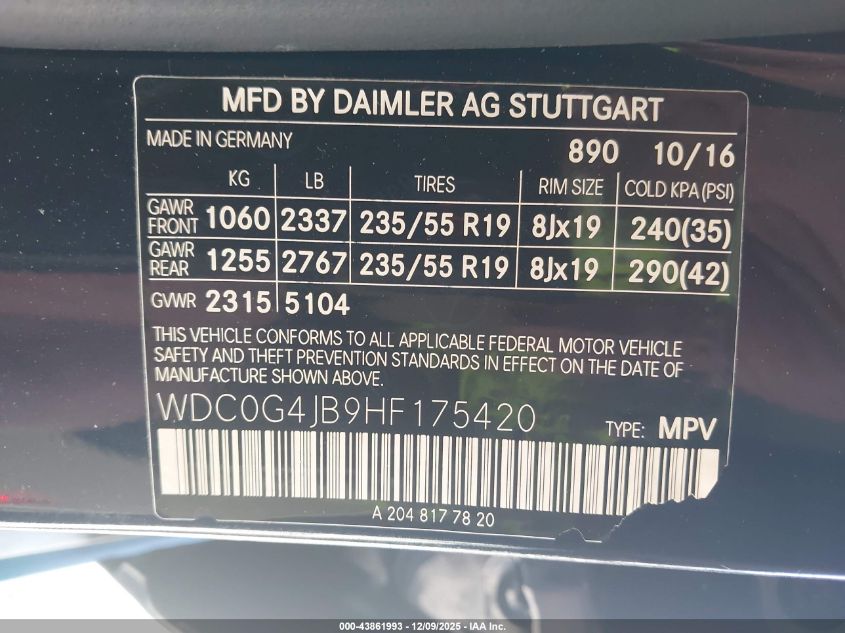 2017 MERCEDES-BENZ GLC-CLASS 2017 року Бензин, 2.0, , vin - WDC0G4JB9HF175420 з США