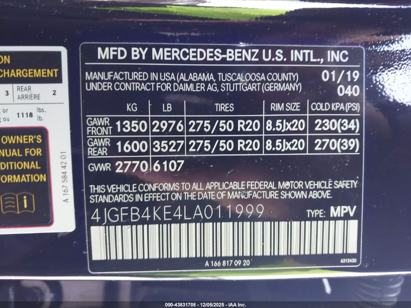 2020 MERCEDES-BENZ GLE-CLASS 2020 року Бензин, 2.0, Повний привід, vin - 4JGFB4KE4LA011999 з США