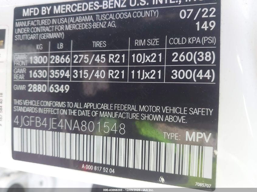 2022 MERCEDES-BENZ GLE-CLASS 2022 року Бензин, 2.0, , vin - 4JGFB4JE4NA801548 з США