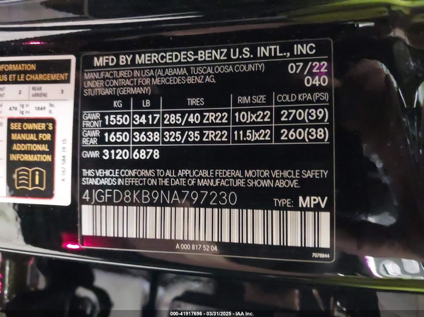 2022 MERCEDES-BENZ GLE-CLASS 2022 року Бензин, 4.0, Повний привід, vin - 4JGFD8KB9NA797230 з США