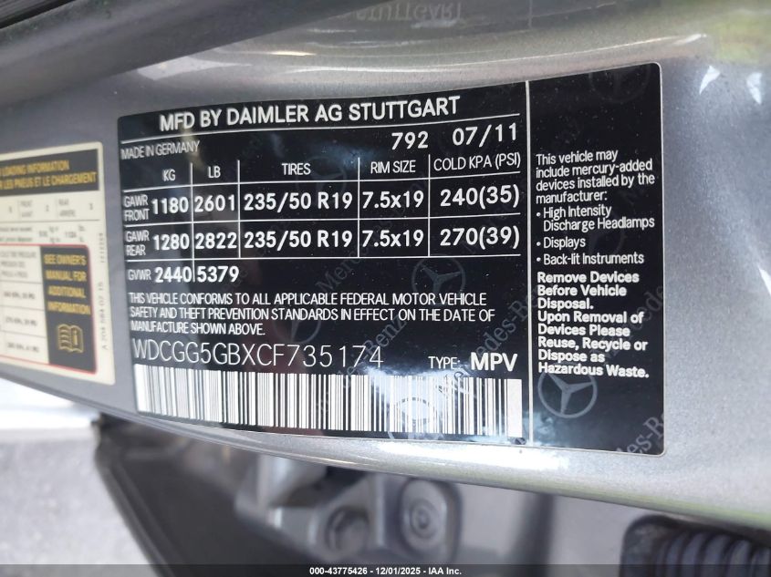 Колір СірийЦиліндри 6VIN WDCGG5GBXCF735174Стан Заводиться та їде (перевірено)Ушкодження Передня або задня AutoRIA